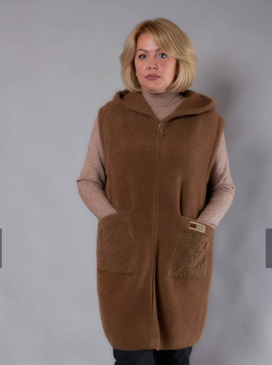 Жіноча тепла жилетка — це універсальний та зручний елемент гардеробу, який забезпечує максимальний комфорт і захист від холоду. Виготовлена з м'якого та якісного матеріалу, вона відмінно утримує тепло, не обмежуючи рухи, що робить її ідеальним вибором. Стильний дизайн та функціональні деталі, такі як застібки або кишені, додають жилетці практичності та елегантності.