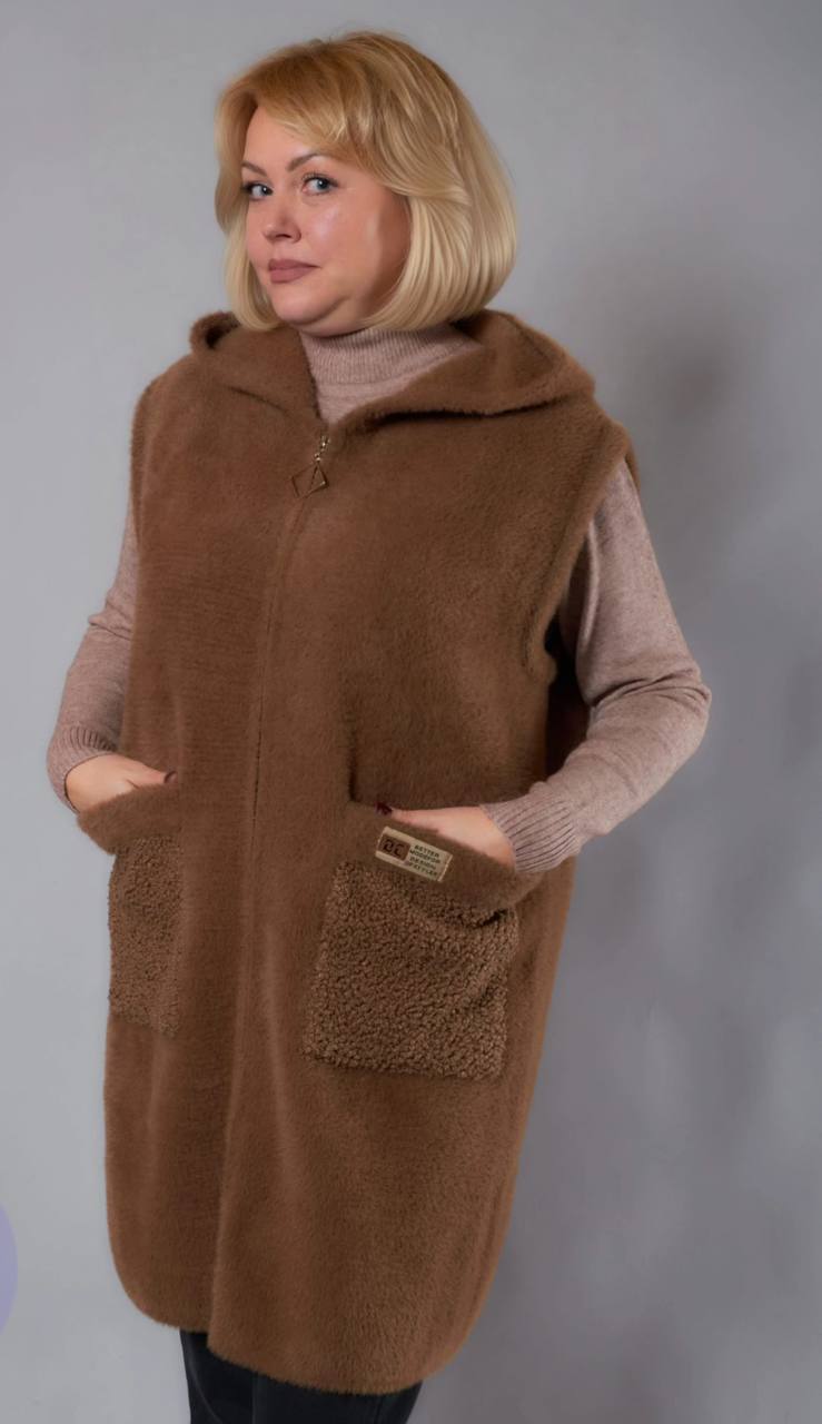 Жіноча тепла жилетка — це універсальний та зручний елемент гардеробу, який забезпечує максимальний комфорт і захист від холоду. Виготовлена з м'якого та якісного матеріалу, вона відмінно утримує тепло, не обмежуючи рухи, що робить її ідеальним вибором.