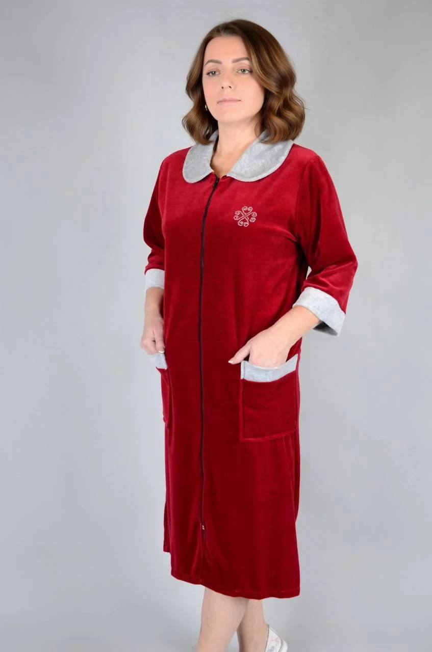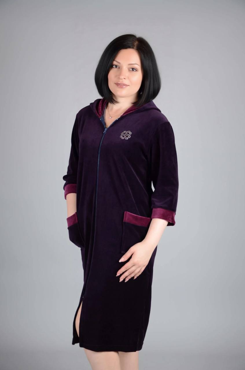 Яким має бути ідеальний одяг для дому? Правильно - комфортним, якісним і красивим! Саме велюровий халат обов'язково стане вашим найулюбленішим одягом для будинку! Тканина - ніжний, м'який велюр - виробництво Туреччина. Розмір - 44, 46, 48, 50, 52, 54, 56, 58, 60, 62, 64, 66, 68, 70, 72, 74, 76